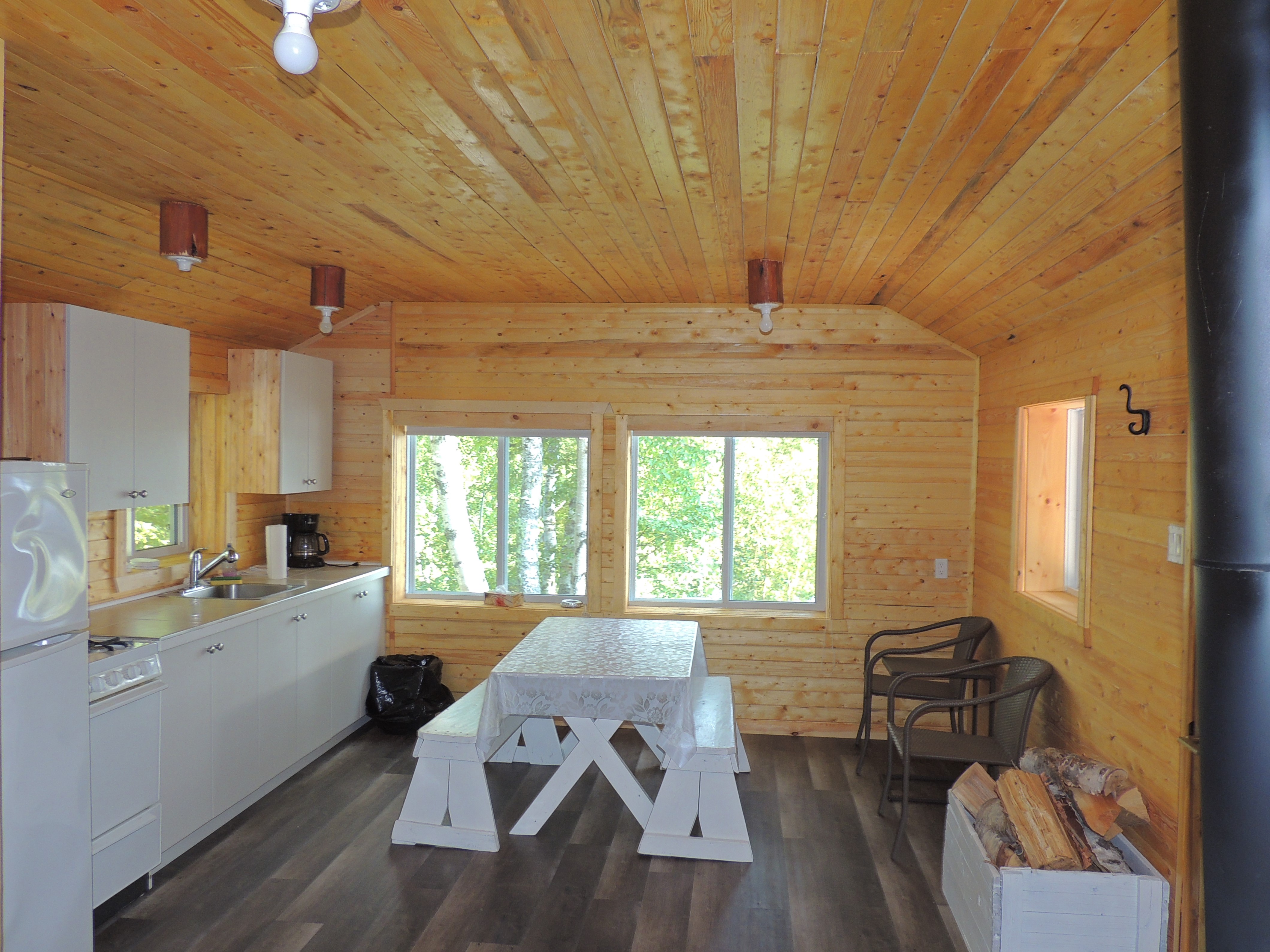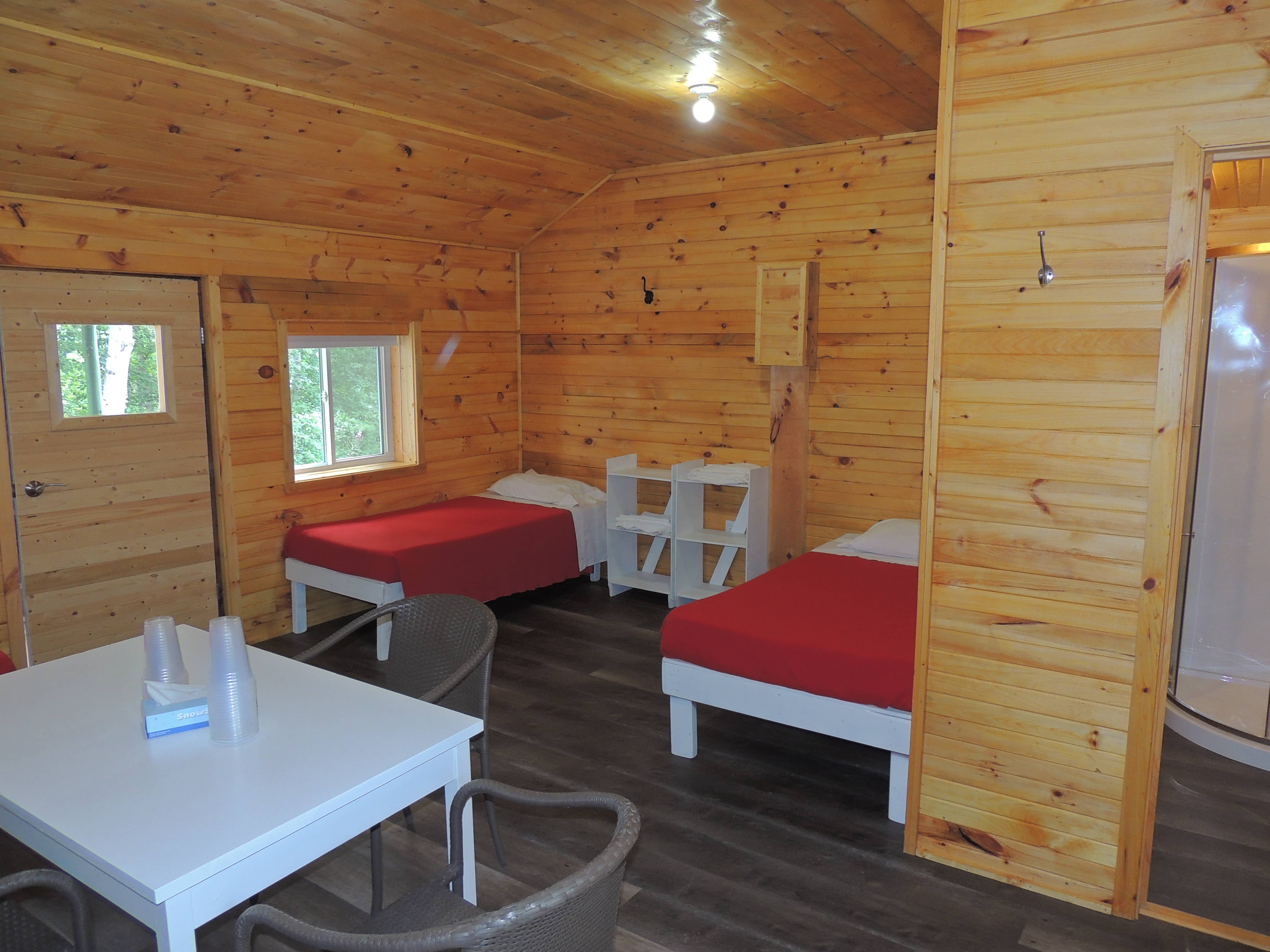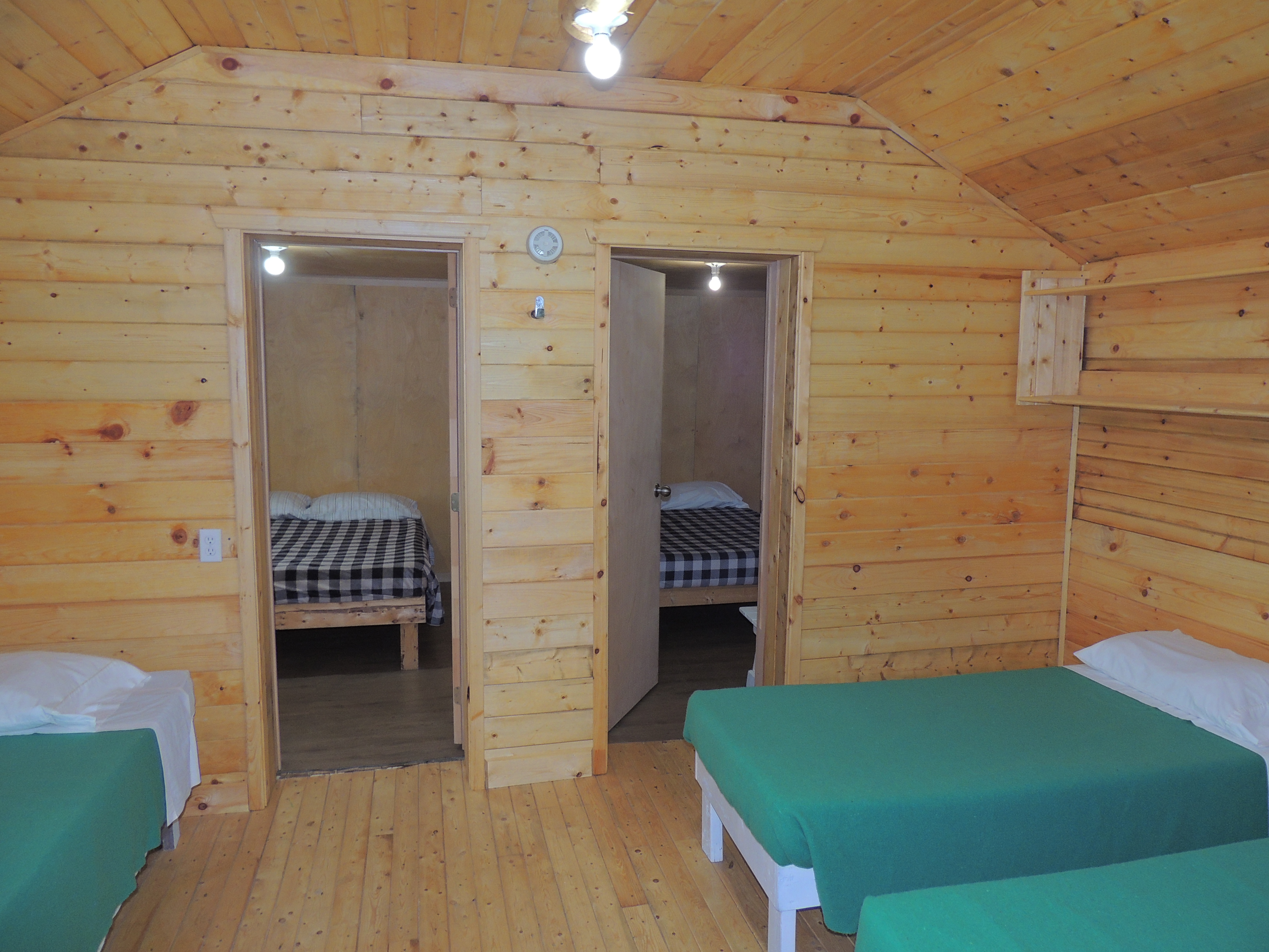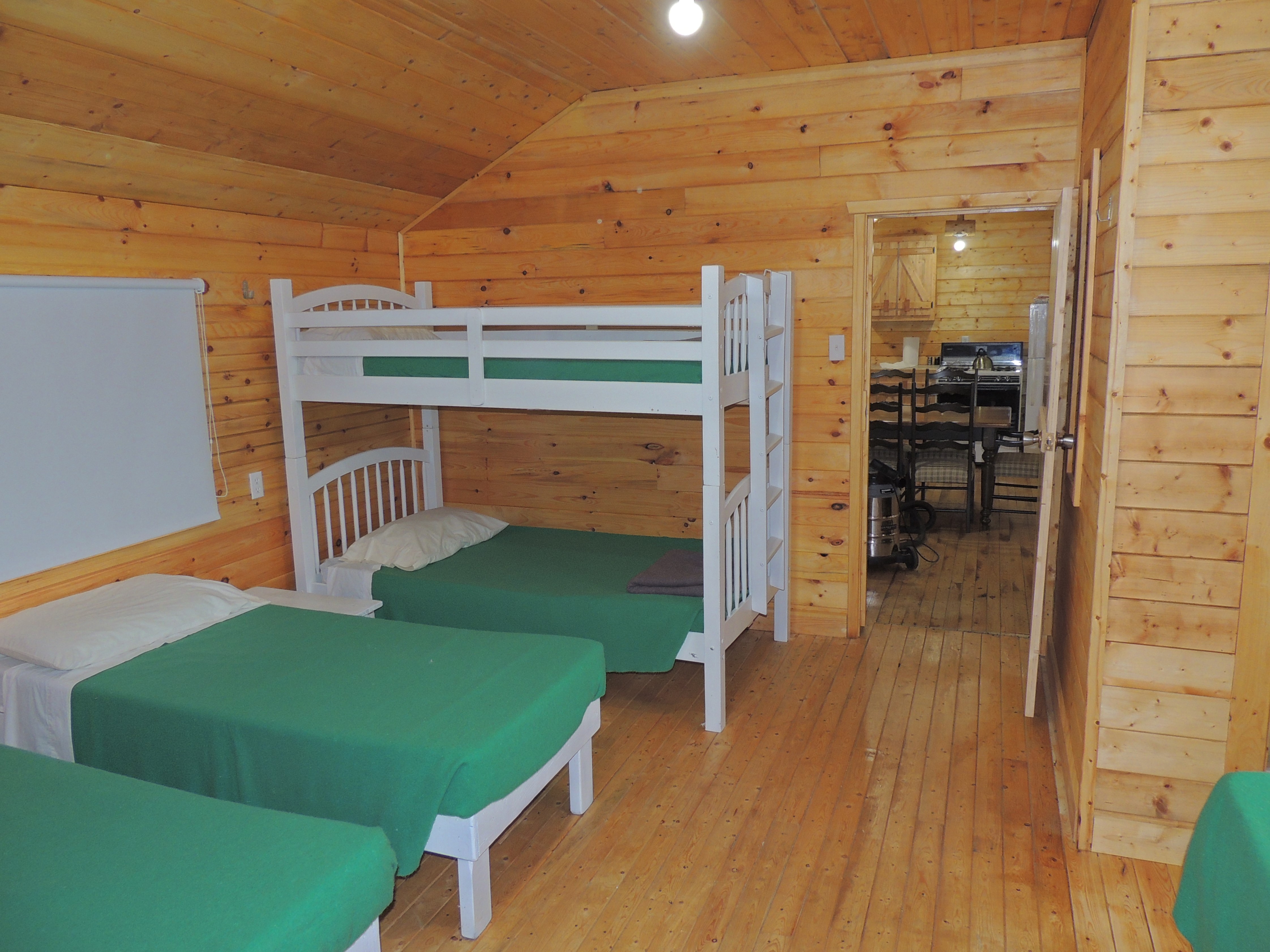 Tous nos chalets en plan européen comprennent en plus des chambres, une cuisine et une salle de bain complète (douche, vanité et toilette). Pour mieux apprécier nos installations, voici des photos de quelques-uns de nos chalets sur le site. Leurs aménagements et le nombre de places varient selon le chalet sélectionné en fonction du nombre de clients par groupe, mais ils ont tous le même confort et la même qualité !