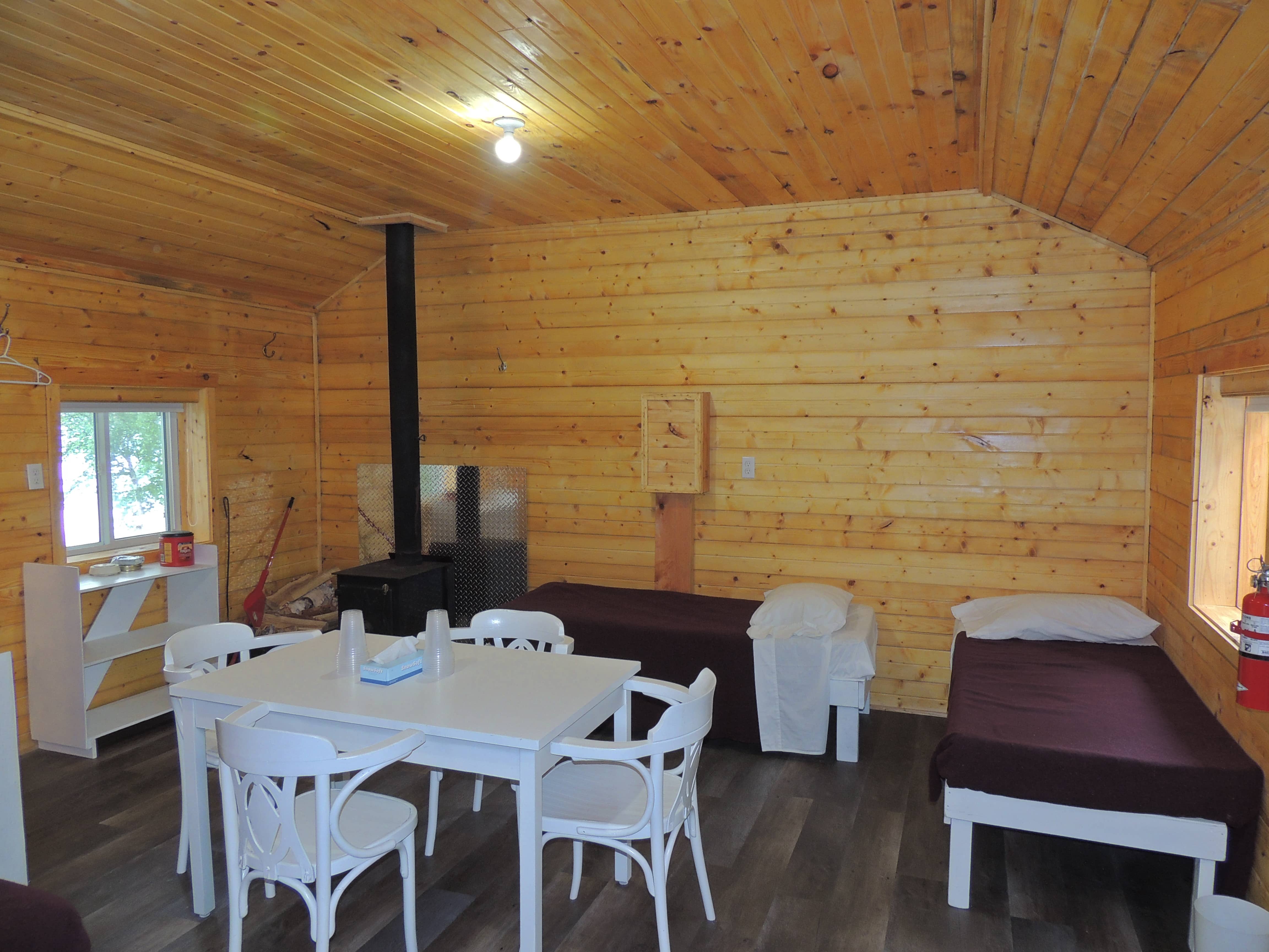 En plus de nos 13 chalets en plan européen, nous disposons également de 4 chalets (sans cuisine) avec des salles de bain complètes pour un hébergement confortable et chaleureux. Vos repas savoureux préparés par nos chefs cuisiniers vous seront servis à la salle à manger. Commencez vos journées avec un petit-déjeuner copieux et partagez vos histoires de pêche autour d'un souper réconfortant, le tout sans avoir à lever le petit doigt !