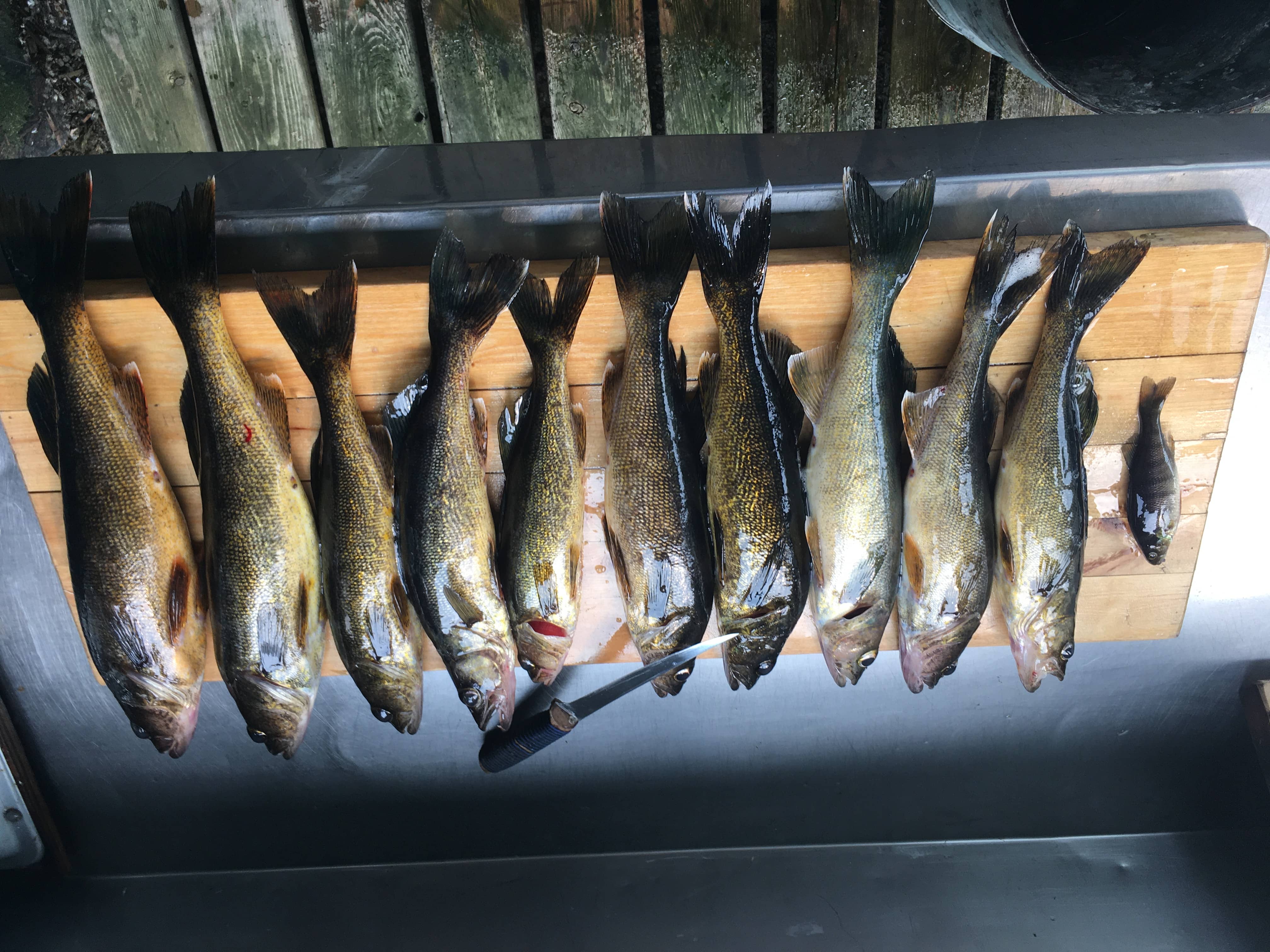 Nous sommes très stricts dans notre politique de remise à l'eau pour conserver la bonne population de dorés dans la pourvoirie. Nous exigeons que tous les dorés au-dessus de 20 pouces (50,8 cm) ou en-dessous de 13 pouces (33 cm) soient remis à l'eau.